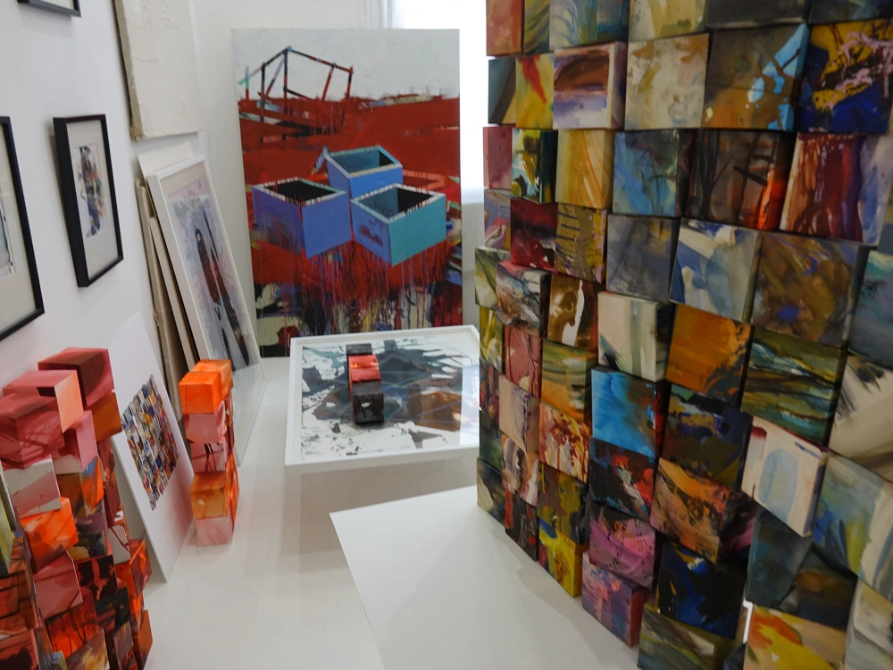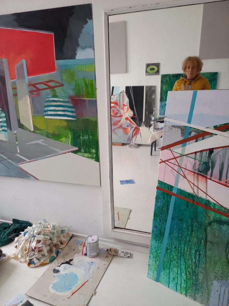 „A művész vásznain az ismétlés során kikristályosodó gesztus folyékony íveire, a mozdulat performatív eseményére kerül a hangsúly. Paradox módon e fényhordozókon nem maradnak nyomok, homogén felületeikkel egyfajta ünnepélyes mozdulatlanság hatását keltik. A metafizikus térben az emberi alakok helyett a környezet architektonikus díszletei válnak megkövült főszereplőkké, akik körül azonban csillapíthatatlanul hullámzik a világ organikus szövete. A perspektivikus erővonalak által teremtett képi mélység húzásával ellentétes tényezők is hatnak e képek befogadóira. Közelnézetben az egymásra felpakolt firkák, gesztusok, foltok, egyenesek és görbék horizontális elterülése hívja fel magára a figyelmet, kiemelve a véletlenszerűség és az egyértelmű struktúrák között lappangó feszültséget. A lineáris szerkezetek egy síkon jelennek meg a gravitáció következtében lefelé csurgó festékanyag vékony egyeneseivel. ” Patrick Nicolas Tayler, 2020