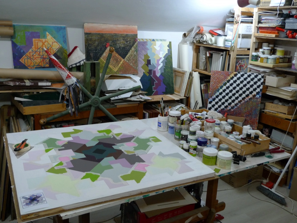 Kántor József természeti ábrázolásainak absztrakt gesztusrendszerébe és örvénylő belső ritmikájába élesen metszenek bele rendszeresen felbukkanó mértani elemek, a materiális őselembe a szellemi konstrukció által létrehozott geometrikus alapelem hatol be. A lírai absztrakció lép frigyre a hard edge elnevezésű művészeti irányzattal, ami a művész világos kompozíciós struktúrát felépítő képességének félreismerhetetlen névjegye. Kántor József pályája kezdete óta használja a legkülönfélébb technikákkal elkészített képző- és iparművészeti alkotásokon a nyíl emblémáját és jelképét. A nyíl ugyancsak kozmikus szimbólum, amely a spirituális megvilágosodás képzettársításán túl az önmagában rejlő belső dinamika megteremtésének is eszköze. A kemény élek mértani alakzatokba kapcsolódó hálózata a festői jelírás közvetlen és spontán jellegét töri meg, amely izgalmas vizuális kontrasztot képez a véletlenszerűséget művészeti médiumba ültető ábrázolásmóddal. Keppel Márton