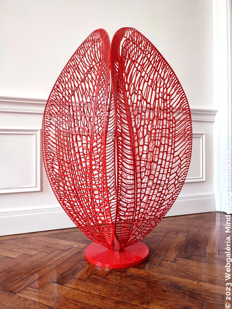 Bogarak kitépett szárnyai, száradó levelek kirajzolódó erezete, idegpályák felnagyított térképei,amelyek absztrakt erővonalakká rendeződnek, hogy önálló entitásként megüljenek a padlón...Mindez acélban. Acéllal általában nem a tudattalanunkat megjelenítő szobrászművészetben, hanem emelőszerkezetekben találkozunk. A festett acélszerkezetek, főként azok a színek, amiket Nóra használ, a citromsárga, narancs vagy piros, hozzáadnak ehhez az indusztriális érzethez, hiszen nehézipari szerkezetek, az épületgépészet színei., az idegpálya nem csak térkép a sejtkapcsolatokról,és a levél messze túlmutat még azon a száradó és elporladó, múló szépségen is, ami az őszi erdőben vár...Vékony Délia