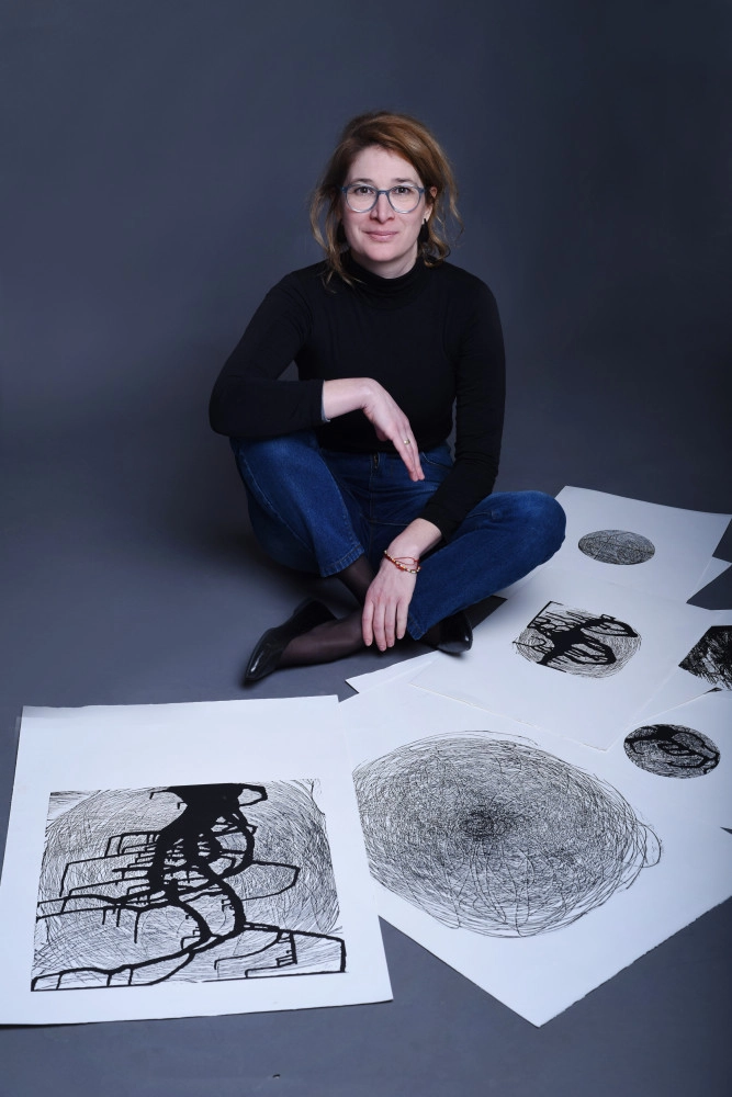 Nagy Katalin Matild (Szolnok, 1980)    Linómetszetei és egyedi grafikái a 60-as évek grafikus generációjának hagyományait követik. Munkáit gazdag tartalommal és kifogyni nem látszó mondanivalóval tölti meg.  Web: https://matildini.hu