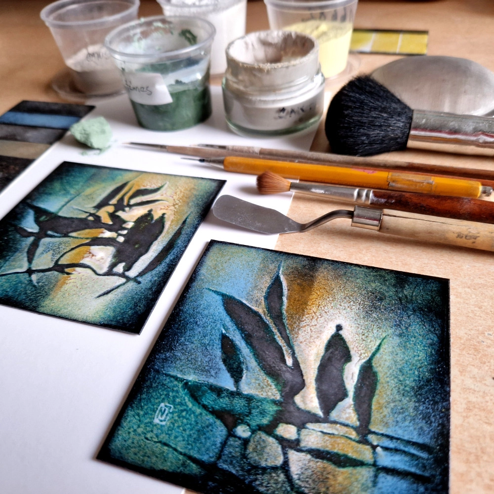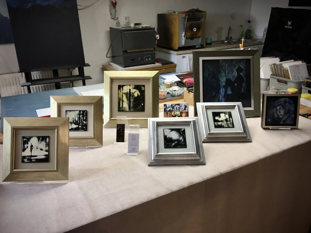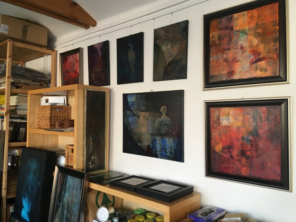 Mint naplóbejegyzések, úgy kísérnek utamon korai kezdetektől az aktuálisan formát öltő képvilágok; kérdéseket felvetően, válaszokat sejtetően, meg-megújuló szíverőkkel. Szemlélődésem középpontjában az úton járó ember áll - s vele sorsunk vetületei. Létábrák ezek. Emberközpontú képek, melyek úgy figurálisak, hogy tusvázlatok kalligrafikus vonalábrái a közegük. Az élethelyzetét kereső, értelmező, azt betölteni akaró emberi minőségek képei. Ezek formaváltozatai jelennek meg zománcokon, azok sajátos, mély tüzű, magas fényű felületein, s a vásznakon, ahol nagyobb méretet öltenek. A képek utalnak a világeseményekből betüremkedő, nehezített körülményeinkre, ugyanakkor bátorítani, sarkallni próbálnak erőink, nyugalmunk, hitünk megtalálására, megélésére. Amikor tűzzománccal festek, egy tradicionális eljárással dolgozom, de nem a műfaj hagyományos elvárásai, kötöttségei mentén. Sokévi kísérletező munka során leltem rá egy saját eszköztárra, mellyel szabadon újraformálhatom az anyagot a festészet és grafika határmezsgyéjén.